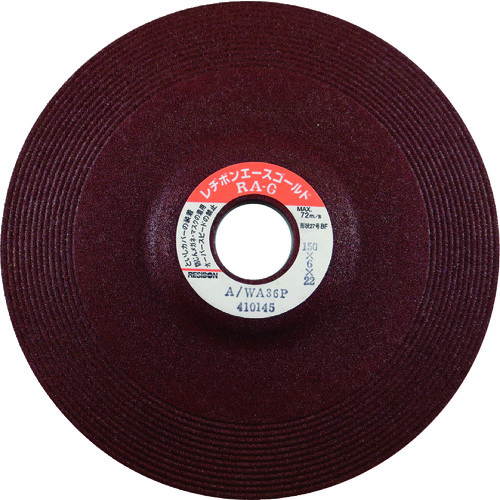 .是特長磨削用通用品。是長時間持續優秀切割的通用型。用途一般鋼等金屬磨削作業。磨光。商品規格規格規格最高使用周速度:72m/s(4300m/min)使用工具:電式盤磨床粒度(#):36外徑(mm):150磨刀材料:A/WA厚度(mm):6硬度:P最高使用轉數(rpm):9160孔徑(mm):22